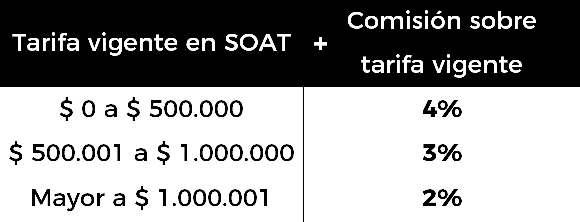 El costo del SOAT será variable según el vehículo: clase, subtipo y edad. Puedes consultar mas información de tarifas oficiales vigentes
